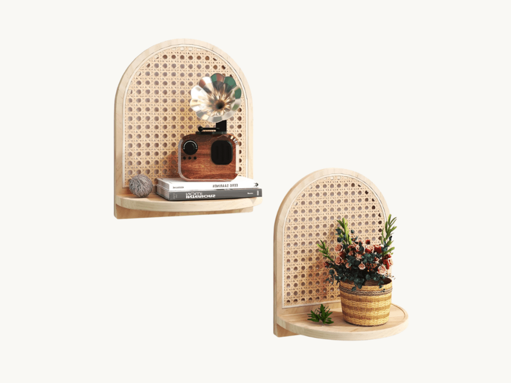 Small but mighty. These rattan-wrapped floating shelves are a clever way to add natural texture to your walls while also creating useful display space for plants, candles, small figurines, or any of the other beautiful objects you’ve accumulated. The 7-inch depth is enough for a small trailing plant or a short stack of books. Style them asymmetrically — one higher, one lower, with some breathing room between — for a more dynamic and intentional look than a matched pair hung side by side.