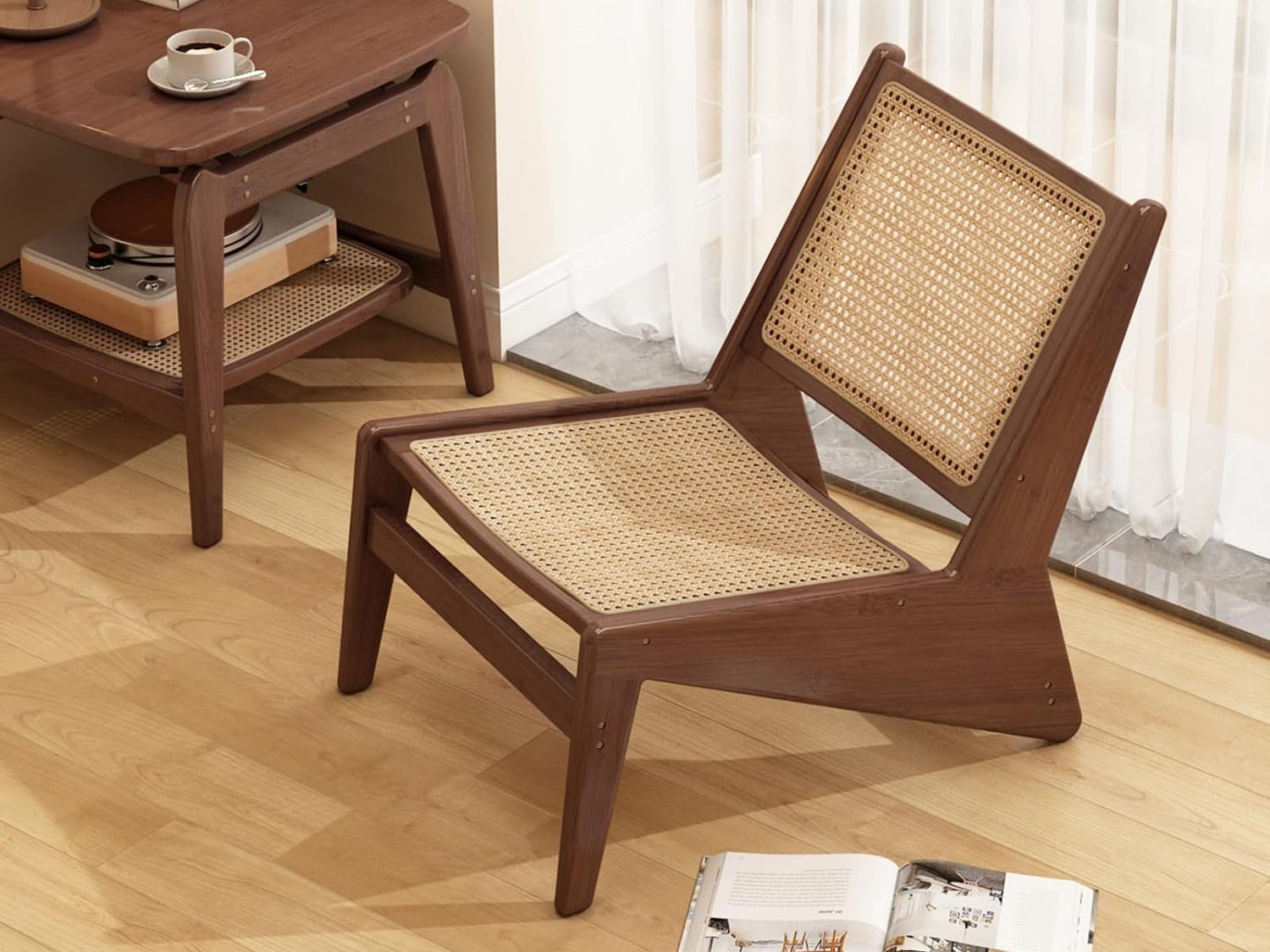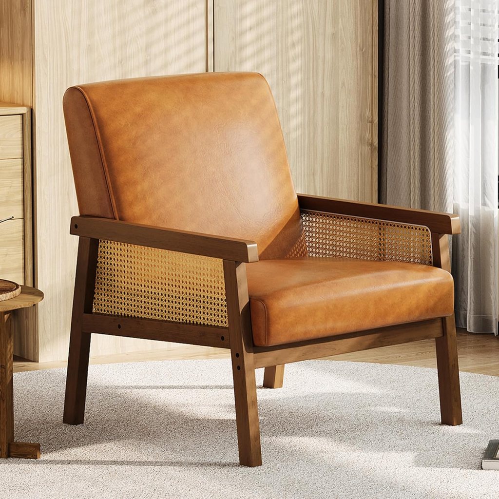 A rattan accent chair is one of the highest-impact purchases you can make in a retro living room, and this one is a particularly sophisticated take on the form. The combination of PU leather seating and a woven rattan back panel gives it a more polished, upholstered feel than a pure rattan chair — it’s comfortable enough to actually sit in for extended periods, while still delivering all the visual texture and warmth of natural rattan. The high back adds a slightly dramatic, throne-like quality that we love.