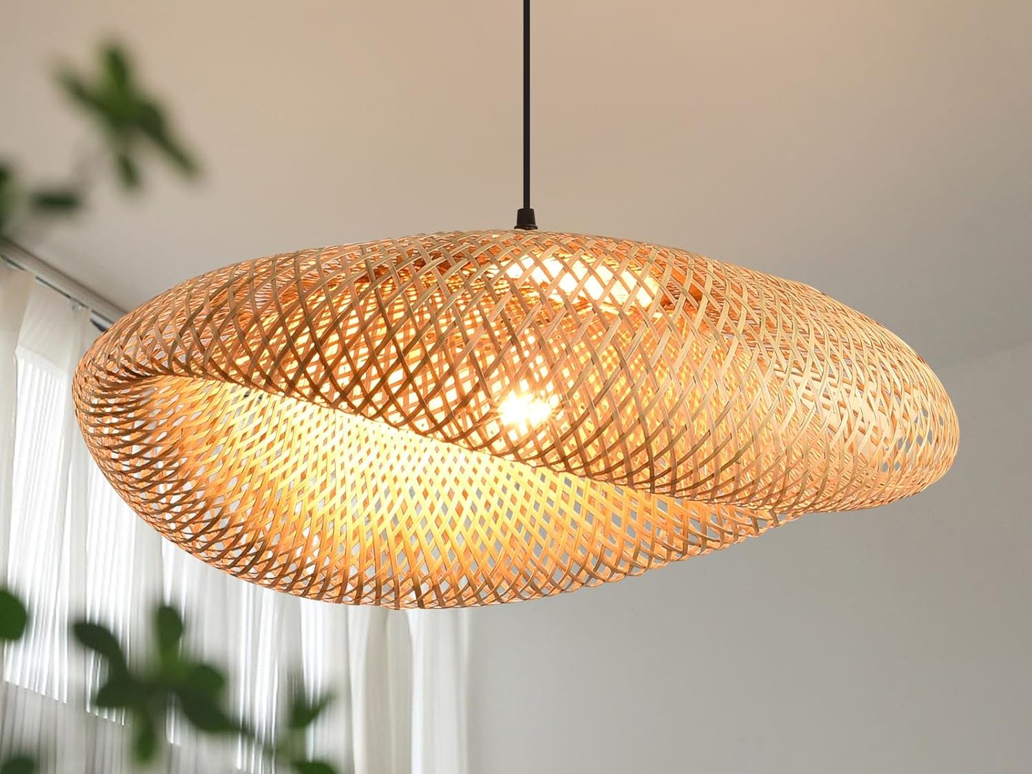One of the most overlooked ways to bring rattan into a living room is through lighting — and this hand-woven bamboo pendant light is a showstopper. At nearly 24 inches in diameter it makes a real statement overhead, and the woven construction casts the most beautiful dappled, warm light through its gaps — the kind of atmospheric glow that transforms a room in the evenings. If you’ve been looking for a reason to ditch a generic ceiling fixture, this is it. Works over a dining table, in a living room corner, or anywhere you want a serious focal point.