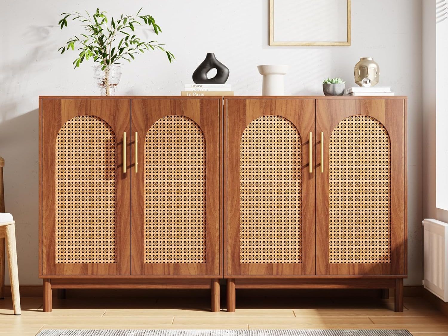 We’re ending on our biggest, most investment-worthy pick. A 59-inch rattan sideboard is the kind of piece that anchors an entire room — it provides substantial storage behind those beautiful woven doors, a full-length surface for lamps, plants, and decorative objects, and an unmistakable 70s character that no other furniture category can touch. The caramel brown finish is warm and earthy, sitting right in the Mod & Cozy palette, and the rattan door panels mean it breathes beautifully and never looks heavy. If you’re ready to make one significant purchase for your living room, make it this one.