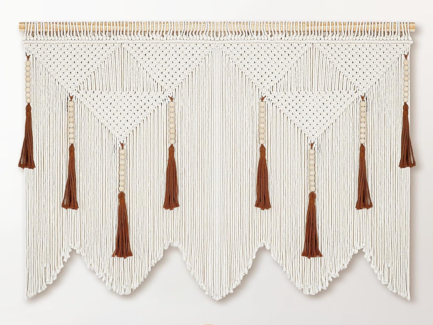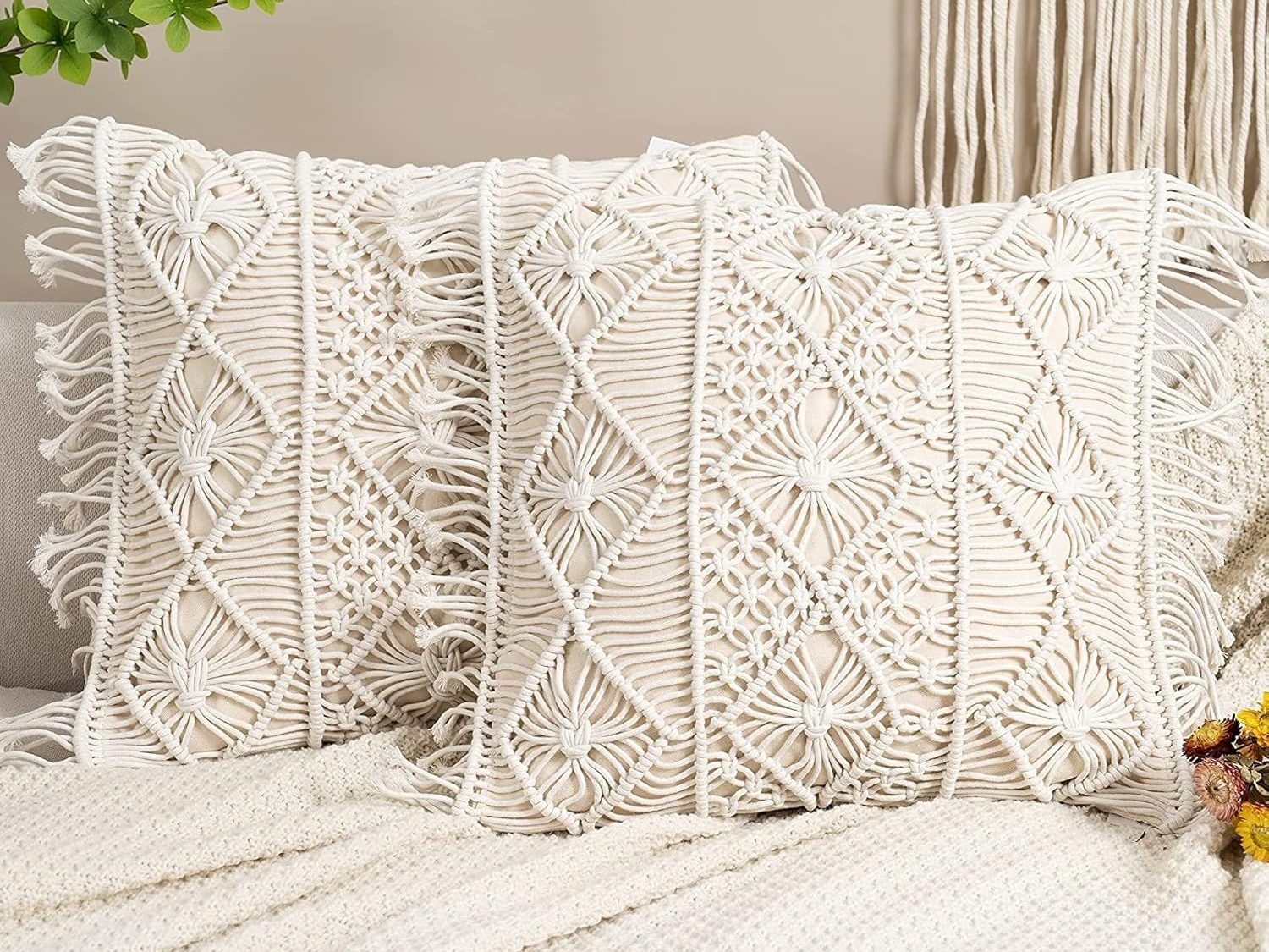 Not all macramé has to go on the wall. These boho fringe pillow covers bring the same handcrafted texture to your sofa or reading chair — a smaller, more subtle way to work the material into your space if a full wall hanging feels like too much. The 100% cotton construction is soft and durable, and the fringe detail is delicate enough to feel refined rather than rustic. A great entry point into the macramé trend, and very easy to style with existing pieces.